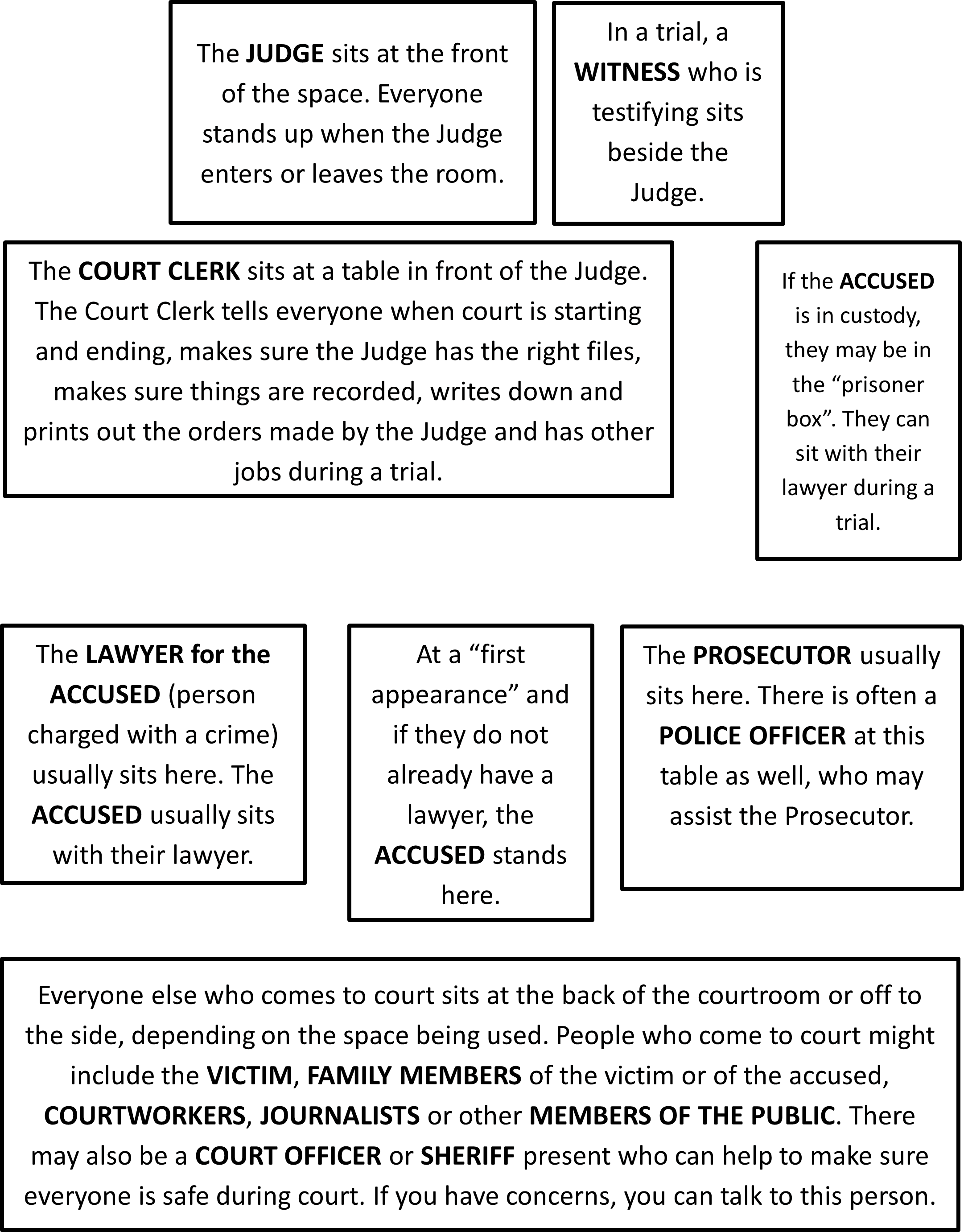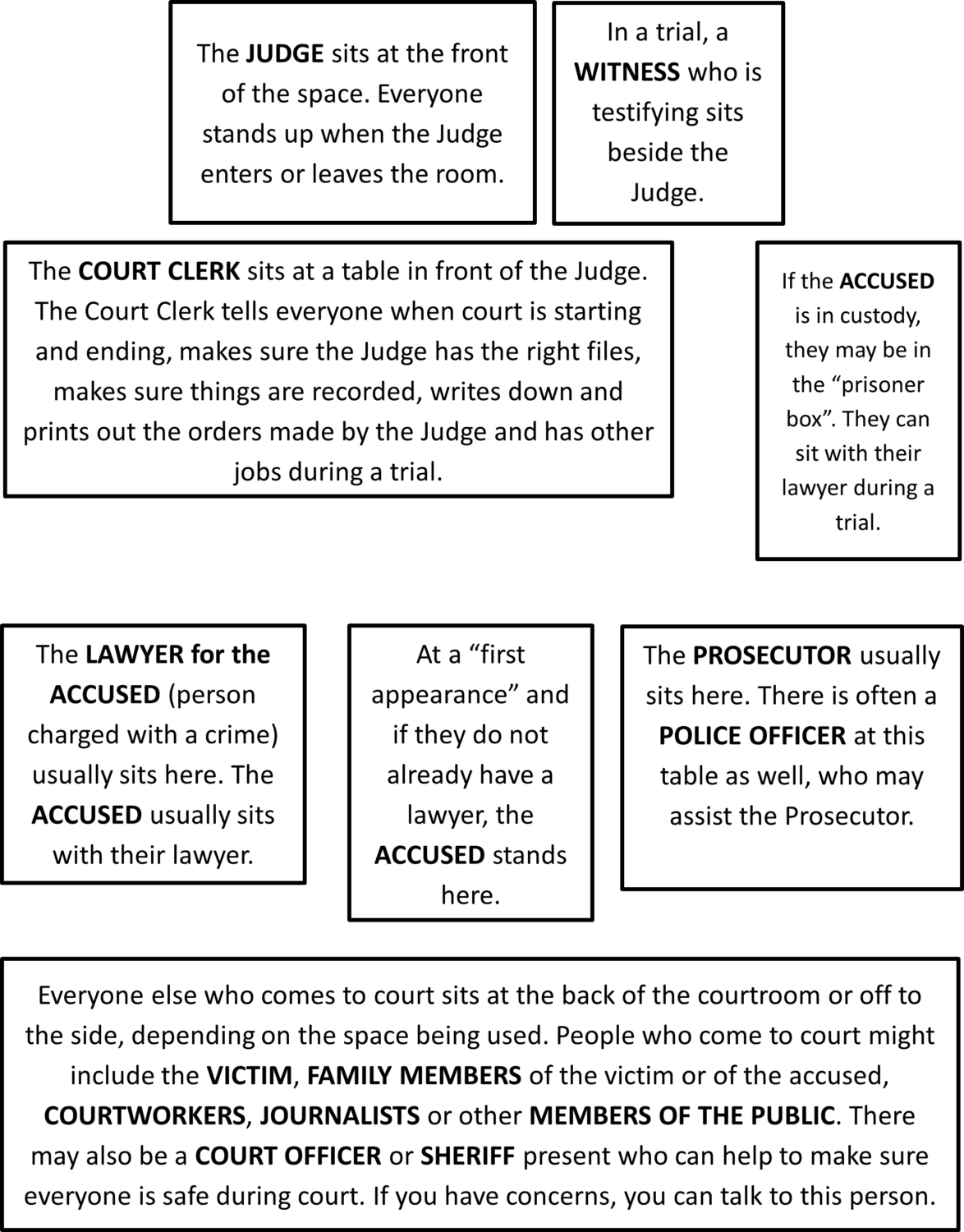 Most courtrooms are set up in the same way, whether you are in a downtown city courtroom or a community hall.